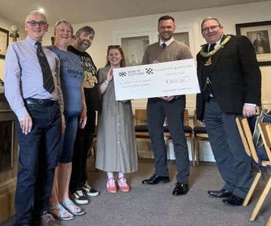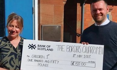The Chairman of the Borders Quarrymen Peter Farquhar met with representative Lisa Hume of the Friends of the Borders General Hospital charity to provide a cheque for £150. A good example of the charitable work the Borders Quarrymen participate in throughout the Scottish Borders. The Borders Quarrymen aim to help the youth of the Scottish Borders through charitable donations, with plans in the year ahead to continue our charity fundraising. A massive thanks again to everyone who has participated in our fundraising activities!